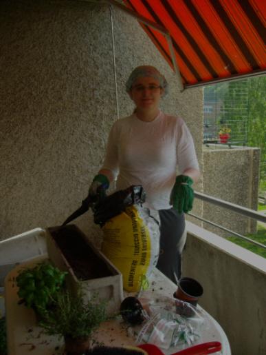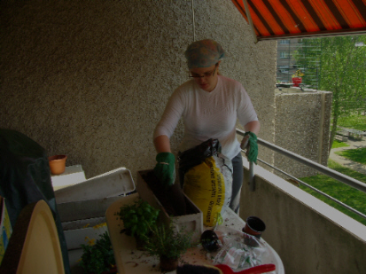 wieder eine Tomate und Gewürze auf unserem Balkon angepflanzt. Ihr seht hier Fotos von der Einpflanzaktion vom Samstag, 14. April. In der Zwischenzeit